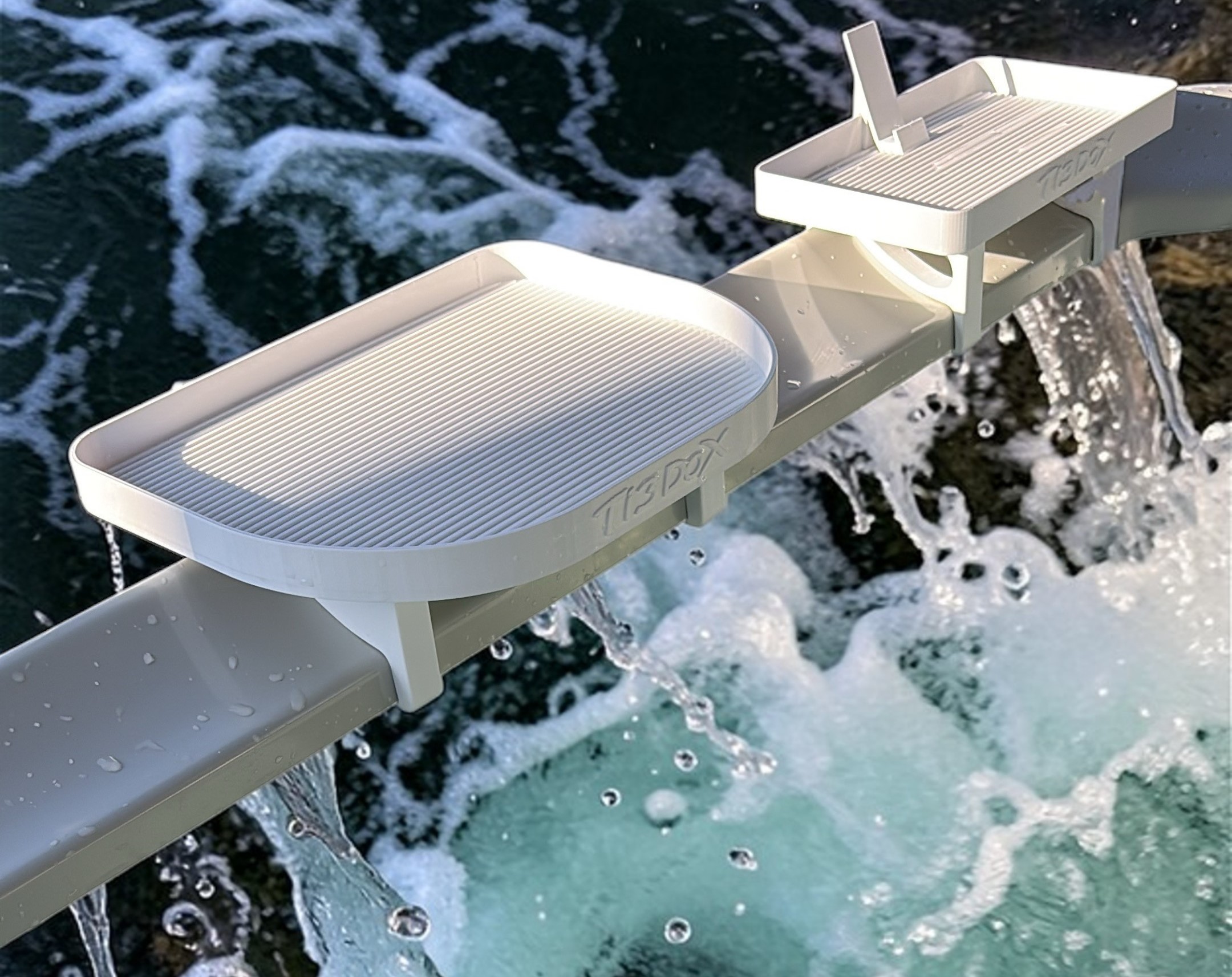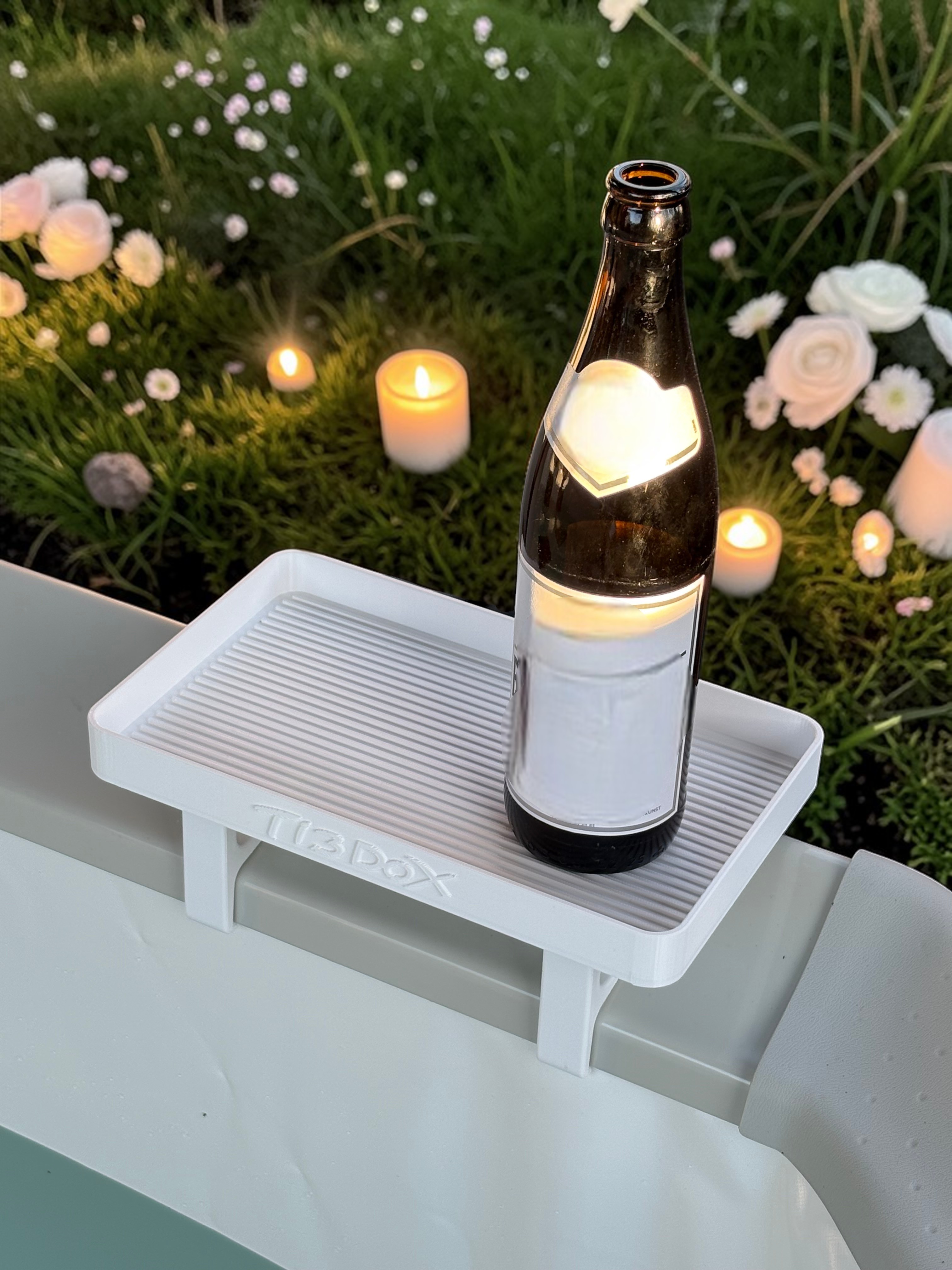 Der Ti3DoX Getränkehalter für MSpa Oslo-Modelle oder MSpa Tribeca mit integriertem Handyhalter sorgt für mehr Ordnung, Komfort und Luxus beim Baden. Ob Getränk, Smartphone oder Tablet – alles findet seinen festen Platz, ohne auf dem Boden abgestellt werden zu müssen oder im Spritzwasser zu liegen. Die clevere Konstruktion wurde speziell auf die besondere Rahmenform von MSpa Oslo und Tribeca abgestimmt und bietet durch die integrierte Einrastfunktion einen zuverlässigen und stabilen Halt.