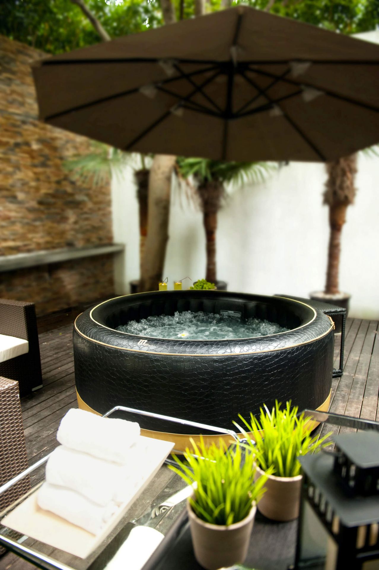 Der MSpa Whirlpool Luxury Exotic bleibt im Betrieb angenehm leise – nur im Bubble-Modus erreicht er mit bis zu 70 dB die Lautstärke eines Haatrockners.