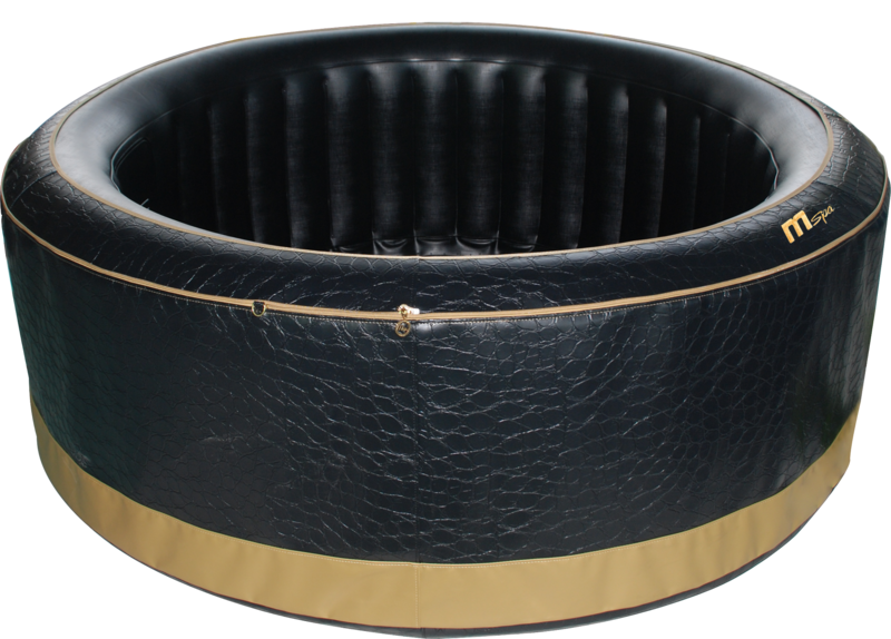 Das exklusive 6-Schicht-Rhino-Tech-PVC-Material und die edle Crocodile-Skin Patterned PVC-Lederoptik mit goldenem Streifen verleihen diesem aufblasbaren Outdoor Whirlpool ein einzigartig luxuriöses Erscheinungsbild.
